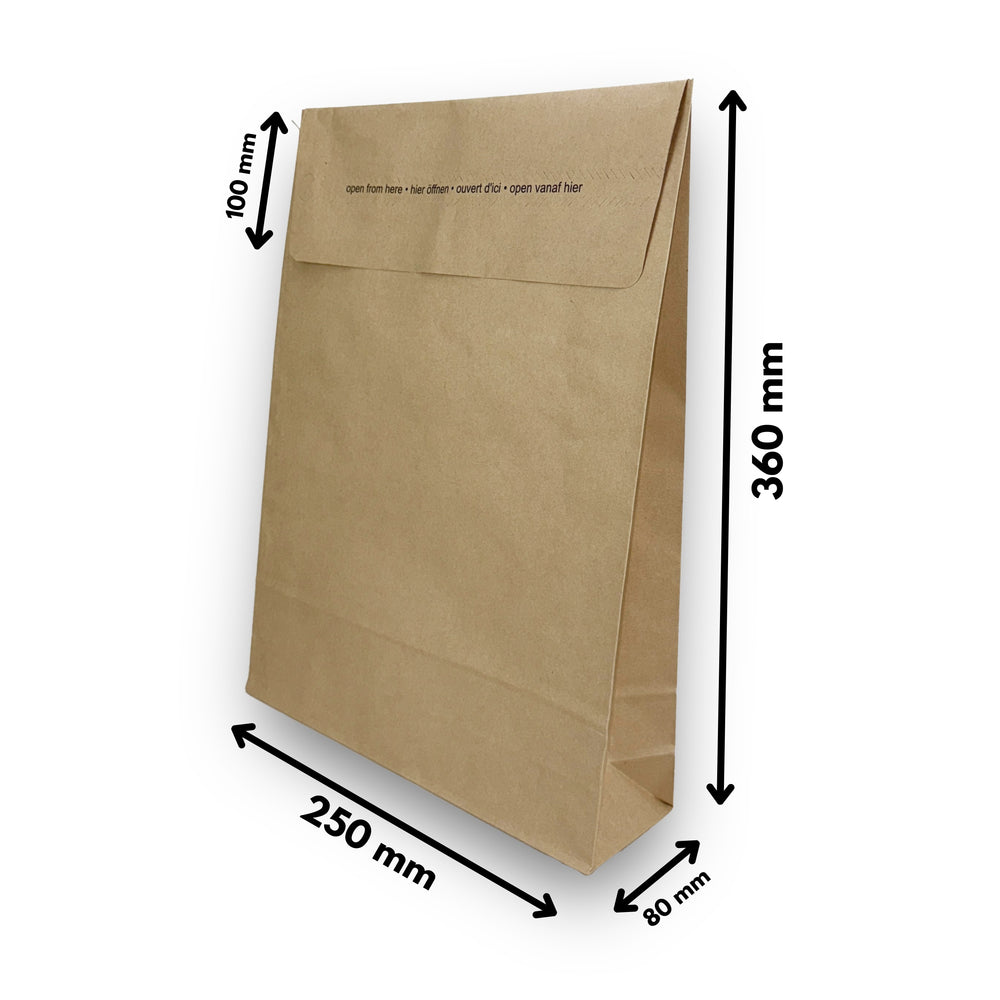 Versandtaschen - Kraftpapier mit Seiten- Bodenfalte 250 x 80 x 360 + 100 mm 110 g/m² (100 Stück)